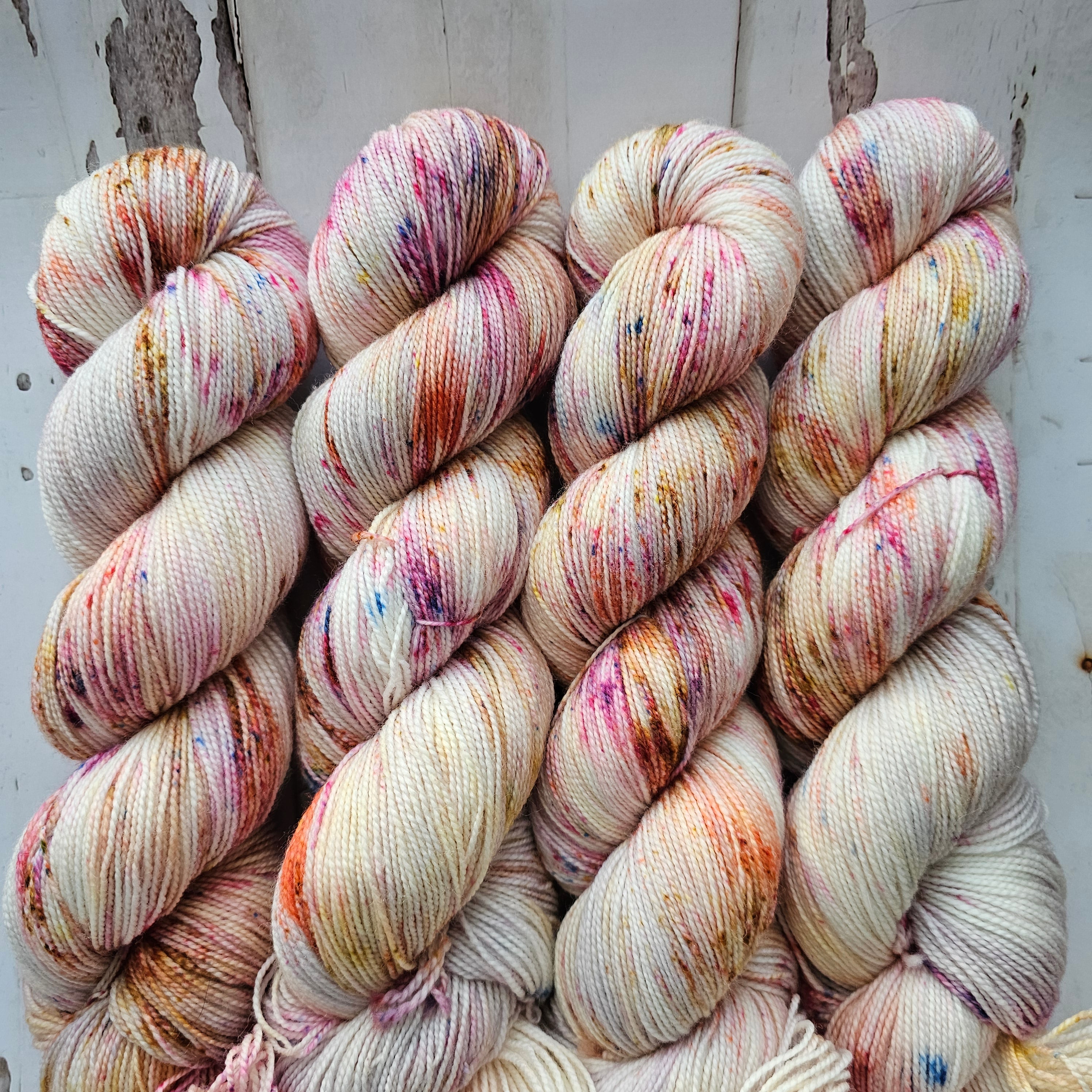 Step onto the field in style with Gridiron Goddess, a dazzling colorway dyed exclusively for the Down Cellar Studio’s Pigskin Party! This minty green base is flecked with celebratory speckles of blue, gold, and pink like confetti in the end zone. Whether you're crafting during game day or calling the shots from your cozy corner, this skein is made for makers who bring both fierce energy and fabulous flair to the field.