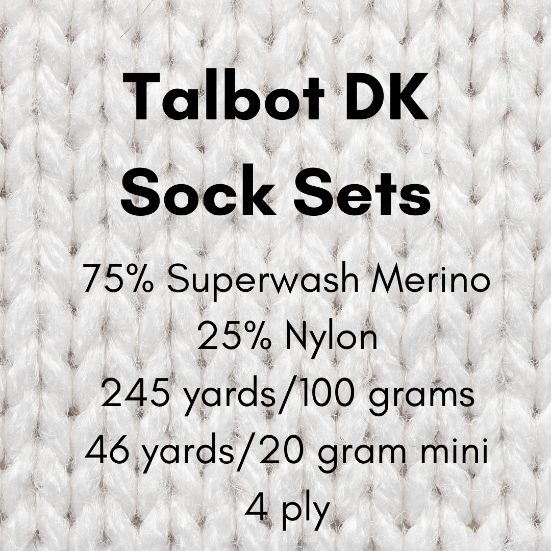 Perfect for cozy socks and other DK-weight projects, our Talbot DK sock sets offer the ideal balance of softness and durability. With a generous amount of yarn for heels, toes, and cuffs, you can create vibrant, long-lasting pieces with ease.