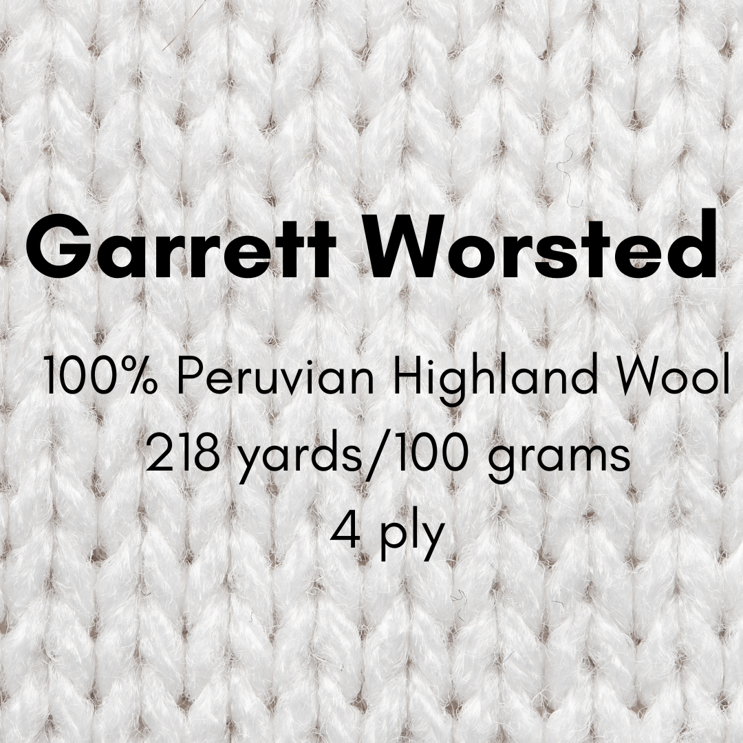 Garrett Worsted is a rich, rustic yarn made from 100% Peruvian Highland Wool. With its sturdy yet soft texture, it’s perfect for creating cozy sweaters, textured scarves, and warm accessories. The natural properties of this wool lend it a beautiful stitch definition and structure, making it an excellent choice for both beginners and seasoned knitters alike.